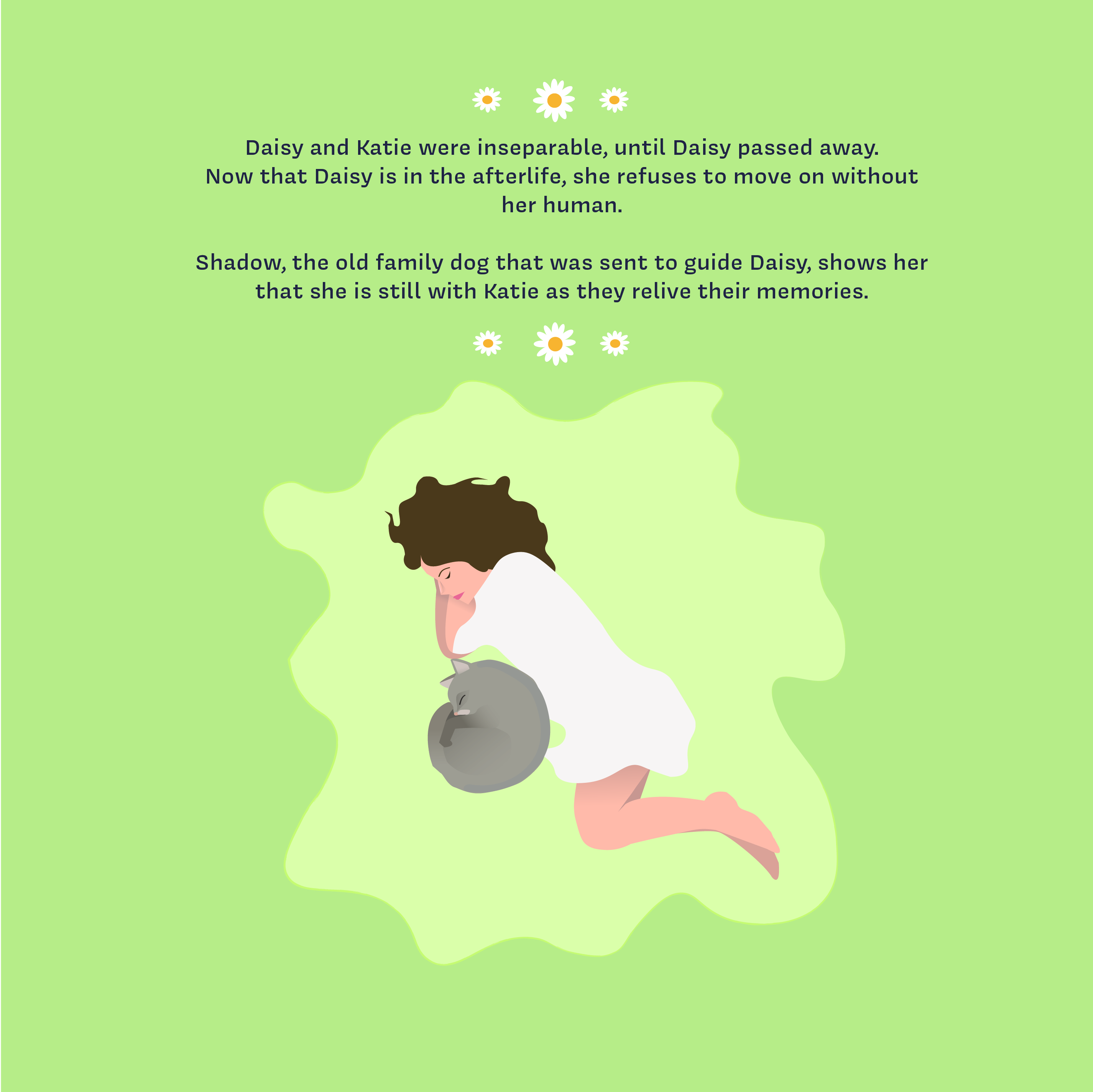 Shadow, the old family dog that was sent to guide Daisy, shows her that she is still with Katie as they relive their memories.